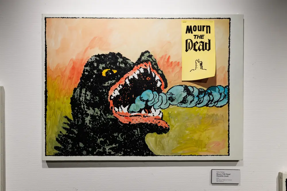 今回ゴジラとのコラボアーティストとして我喜屋位瑳務と韓国よりNOH Sanghoを迎えてコラボ作品やゴジラ立像等を展示。